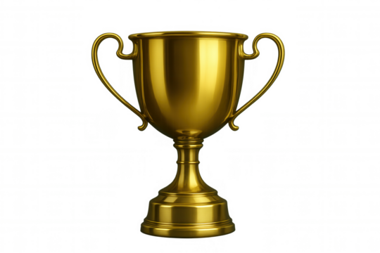 Shiny golden trophy cup isolated on transparent background, symbolizing success, achievement, and winning
