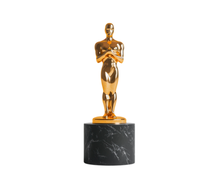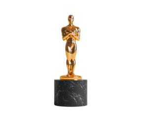 A golden trophy shaped like a human figure, symbolizing a film award. PNG transparent.