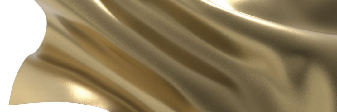3D Flowing golden fabric on transparent background