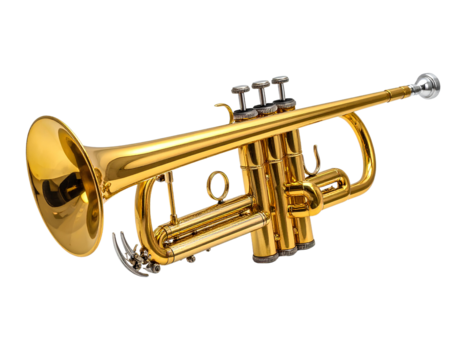 Elegant Golden Brass Trumpet with Detailed Craftsmanship, Premium Musical Instrument Cutout isolated on a transparent background, PNG