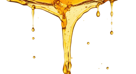 Golden honey dripping isolated on white background creating rich texture