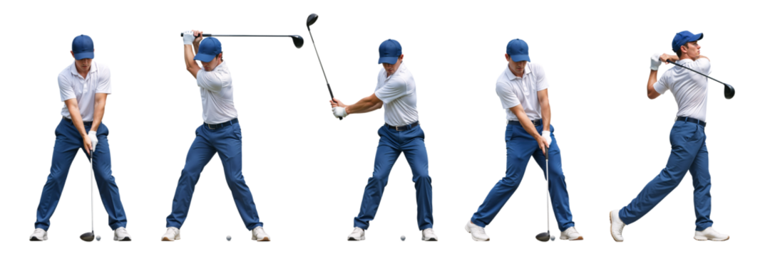Golf swing action golf course sports photography outdoor close-up. Isolated on transparent background, png.