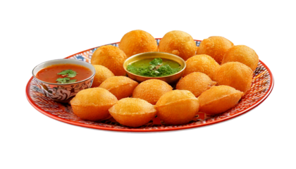 Crispy fried puris served with spicy and tangy chutneys. background removed