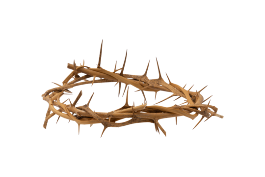 Crown of thorns religious symbol isolated on transparent background. Religious symbolism of a thorny crown isolated on white background.