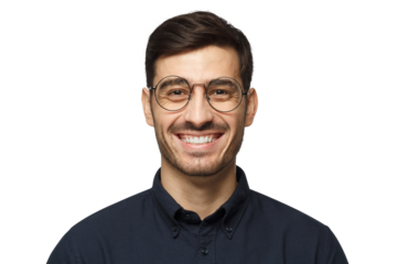 Man, portrait and smile with confidence for fashion with casual outfit, shirt and trendy style with beard. Face, happy and person with optimism and good mood isolated on a png transparent background