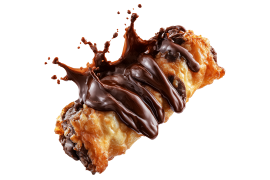 Deep-fried moro bar pastry stuffed with chocolate chunks and covered in melted chocolate, isolated on white transparent background, concept of New Zealand sweet dessert