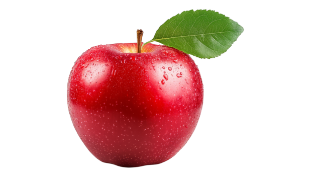Juicy red apple with leaf, a symbol of freshness, health and natural goodness fresh