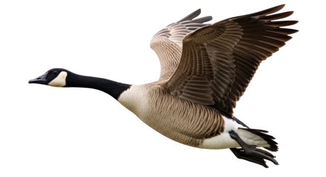 Canada goose bundle, flying, standing and portrait, isolated on a white background, anima