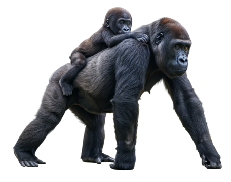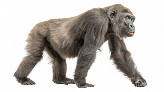 Portrait of a powerful gorilla showing strength and intelligence on a transparent background. Majestic and captivating wild animal close-up.