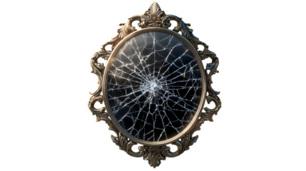 Cracked ornate mirror, isolated on transparent background