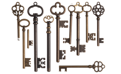 set of Pair of Crossed Keys in Gothic Style, isolated on a transparent background