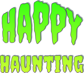 Happy Haunting Neon Green Gradient Halloween 3D Typography Isolated on Transparent Background