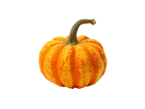Transparent whimsical autumn pumpkin illustration with curly stem