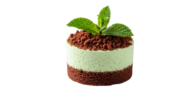 Minimalist layered chocolate cake slice with lit candle, transparent