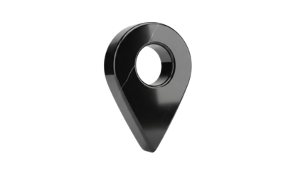 Sleek black map pointer PNG isolated on transparent background, location pin for navigation and travel apps