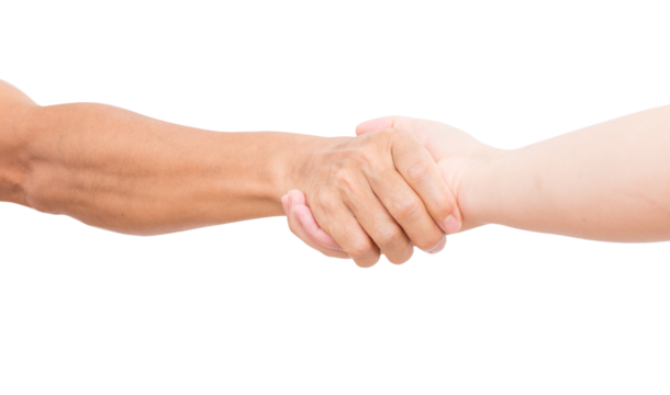 Two hands grasping, isolated on white background. Gesture indicating grabbing or catching something invisible, interaction and communication concepts. POV, transparent PNG