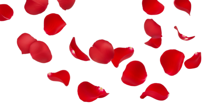 Vibrant deep red rose petals gracefully falling against a sleek black backdrop ideal for love romance weddings