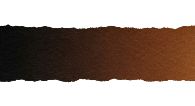 A strip of textured gradation brown and black with realistic torn edges, blank for text. Isolated on transparent background,