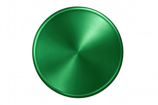 Metallic green circular disk with brushed surface, displaying radial gradient, set against transparent backdrop