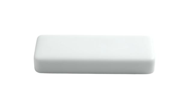 A 3D render of a rectangular, white bar with rounded edges, centered on a black background, showcasing subtle gradient shading