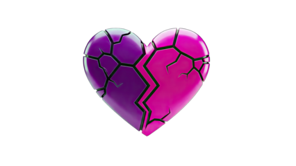 3D Broken heart with purple and pink gradient on transparent background