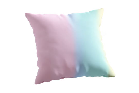 Soft square pillow with pastel pink and blue gradient isolated on a transparent background cushion textile