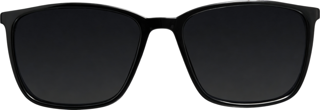 Minimalist black sunglasses silhouette on transparent background