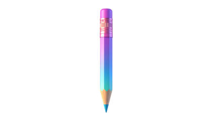 A brightly colored pencil, displaying gradients of purple, blue, and pink, on a black background