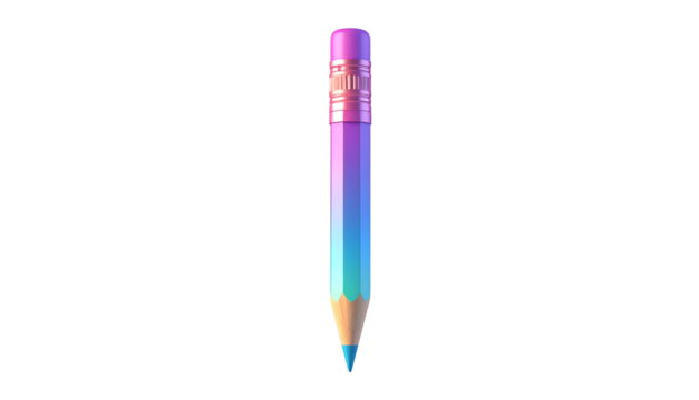 A soft, chubby bubble-style pencil sits on a transparent background. The pencil features a gradient design, moving from yellow to pink. It is ideal for art projects