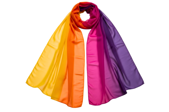 Colorful silk fashion scarf with gradient fade isolated on transparent background