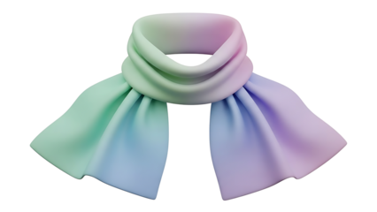 Vibrant pastel-colored scarf wrapped around neck against white background no-bg