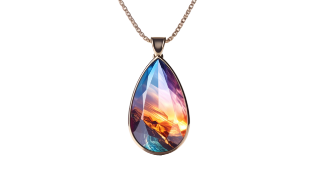 Teardrop pendant showing a landscape in its facets
