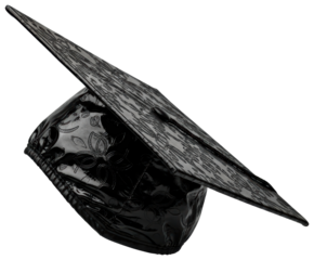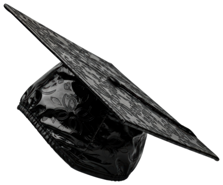 Shiny black graduation cap with textured pattern for ceremony isolated with transparent background