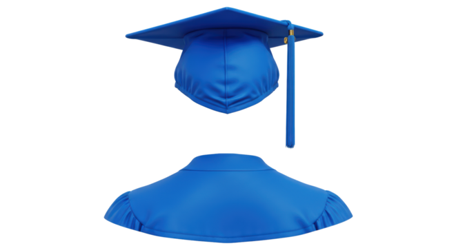Blue Graduation Cap With Blue Tassel on a White or Clear Surface PNG Transparent Background
