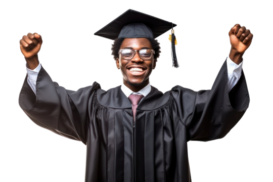 Happy black man graduating student celebrating Graduation isolated on transparent background.