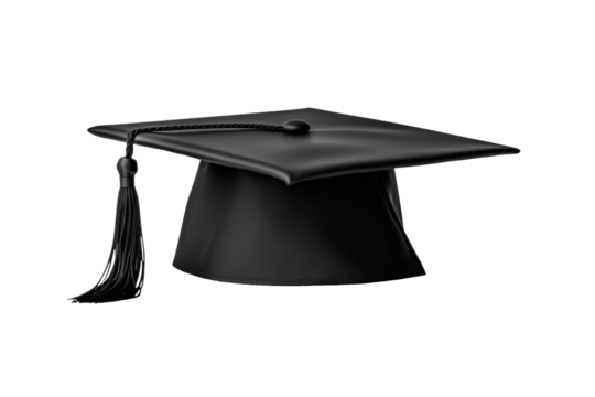 Silhouette of student in wheelchair with graduation cap on transparent background
