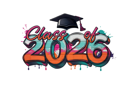 Vibrant graffiti style illustration celebrating the future graduating class of 2026 with a graduation cap symbol
