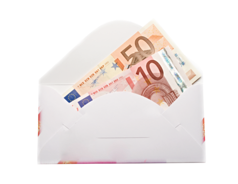 Envelope with euro isolated on white