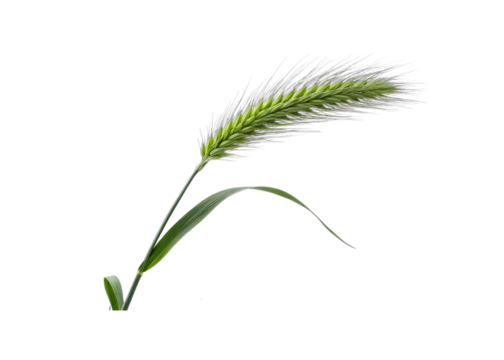 Single green barley ear with leaf isolated on transparent background