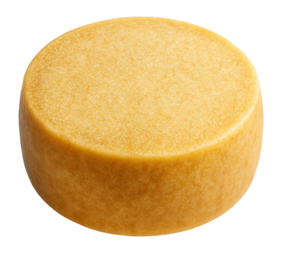 Round wheel of grana padano cheese with a granular texture