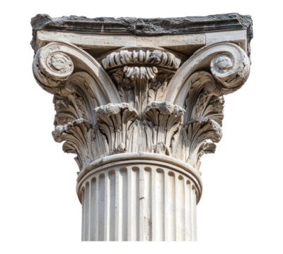 Ancient classical style weathered sculpture on transparent background