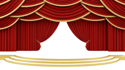 Elegant Theatre Stage with Red Curtains Isolated