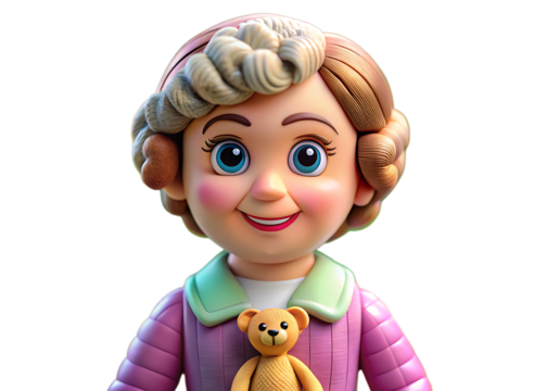 Cartoon adult woman toy grandma made up of clay figurine adult on a white background PNG generative ai