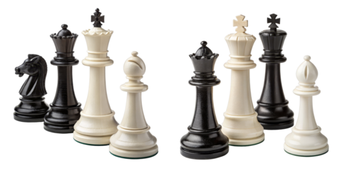 Chess Pieces Composition Black and White King, Queen, Bishop, Knight, Isolated on Transparent Background, Strategy Game, Chess, Strategy, Game