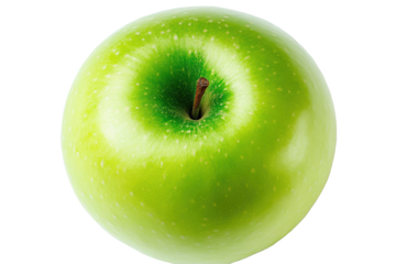 Fresh Granny Smith apple isolated PNG, green fruit with stem on transparent background, healthy eating and cooking ingredient
