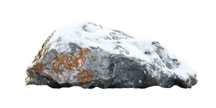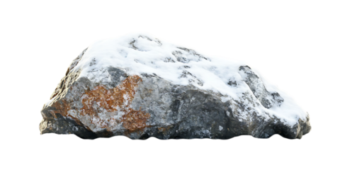 Beautiful natural rock with snow isolated on white and transparent background