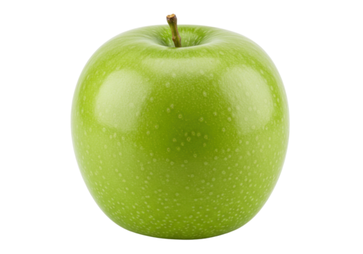 Isolated Granny Smith apple still life with stem detail for food and nutrition concepts