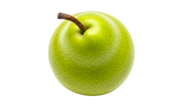 Fresh granny smith apple with stem detailed studio shot isolated on transparent background