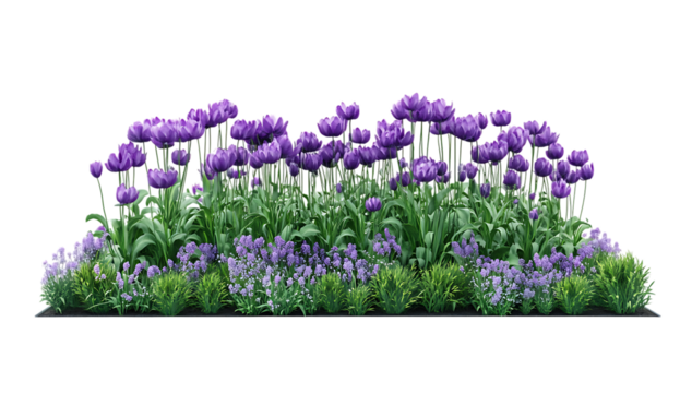 Purple Tulip and Muscari Flowerbed Spring Garden Arrangement