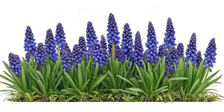 grape hyacinth blooming in garden spring isolated on white background, HD realistic